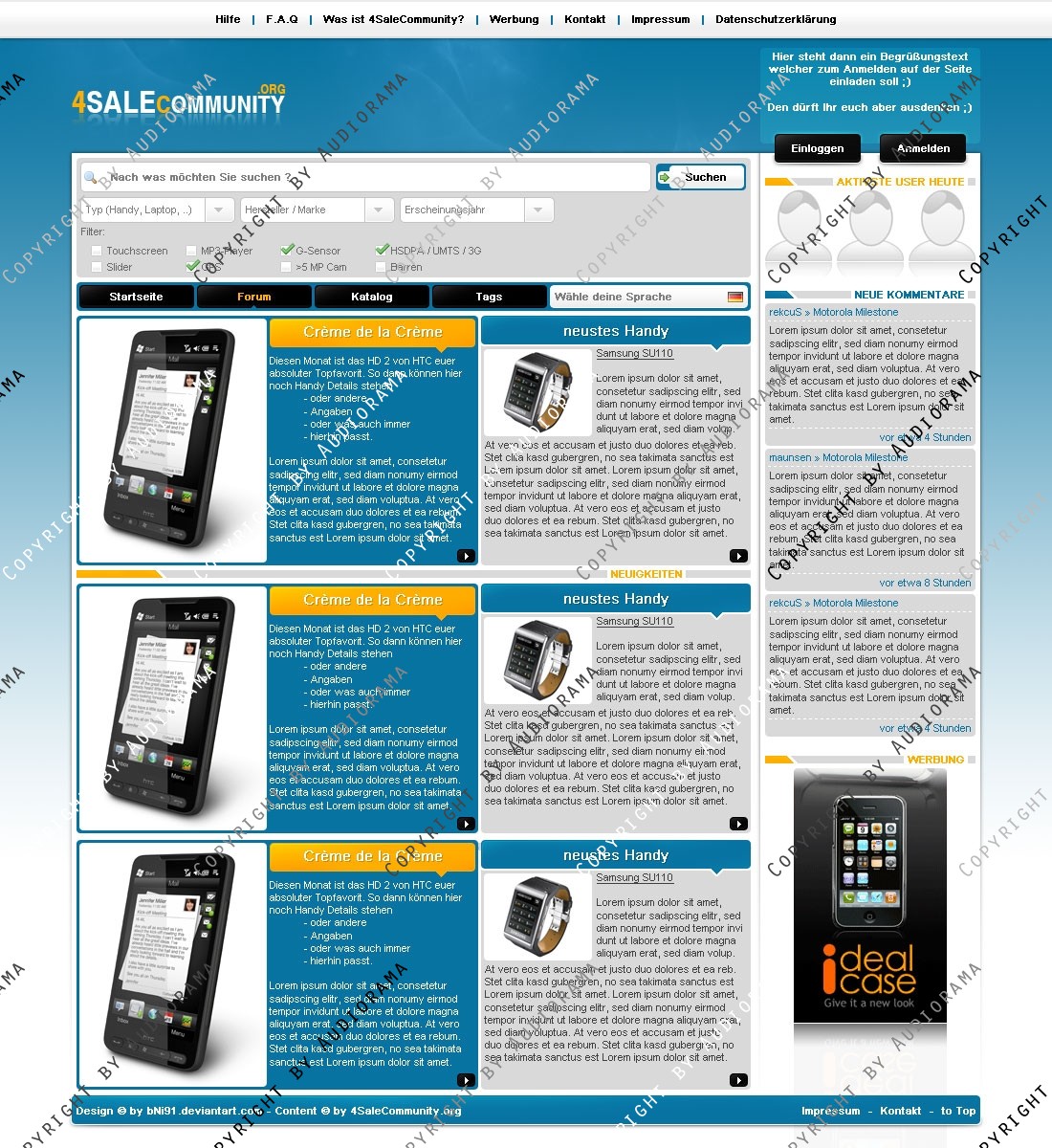 Hinweis: Hierbei handelt es sich nur um das Design, eine Anpassung an ein CMS-System ist nicht im Preis enthalten!