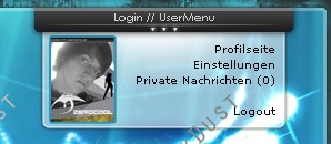Das Usermenü befindet auch noch sich in einer seperaten, geslicedten .PSD-Datei, um die Umsetzung ein wenig zu erleichtern.