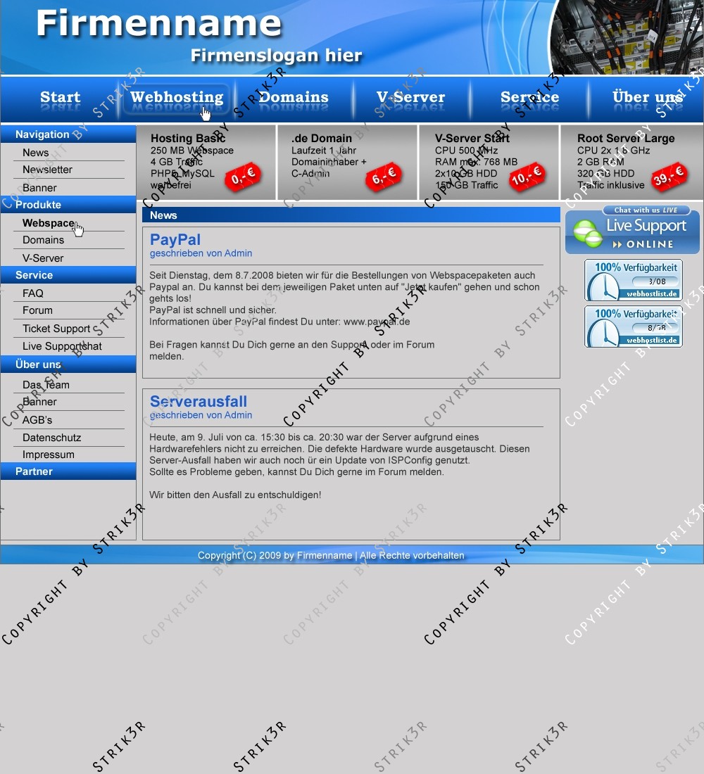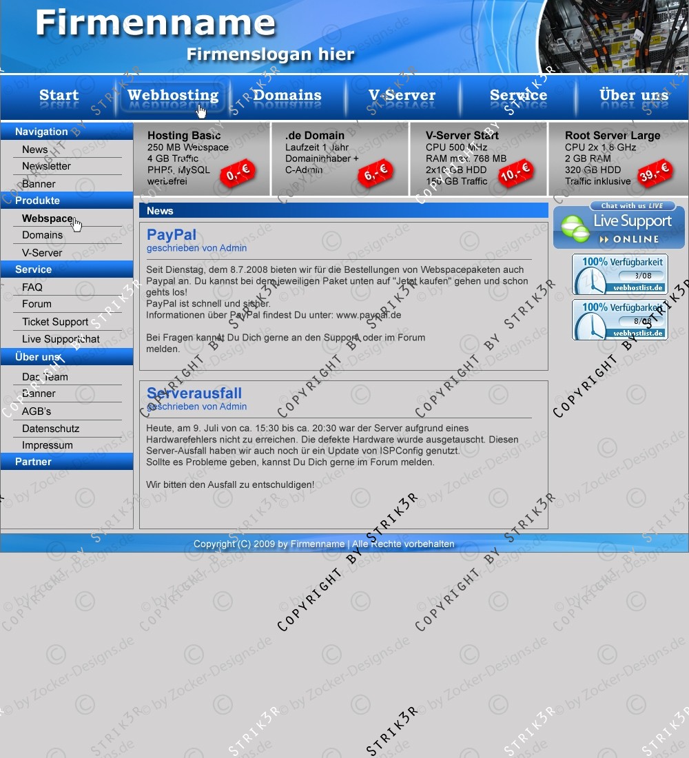 Hinweis: Hierbei handelt es sich nur um das Design, eine Anpassung an ein CMS-System ist nicht im Preis enthalten!