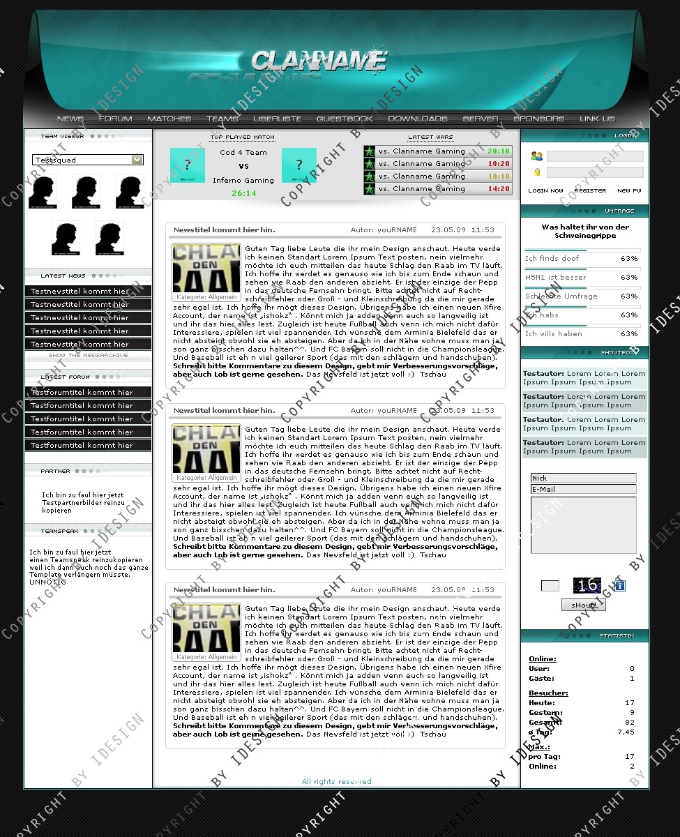 Du hast noch keinen Account auf ClanDesigns.de? Dann kannst du dich hier kostenlos registrieren!