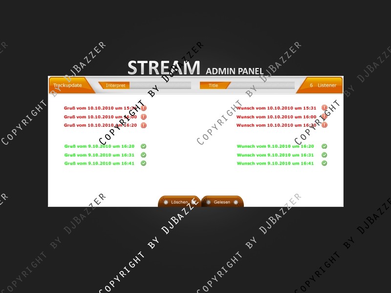 Einmal die Admin Seite, die die Moderatoren/Deejays oder Generell Admins einsehen können, wo Sie die Gruß und Wunschbox auslesen können und Tracklist schreiben können, auch da, gibts eine Listener Anzeige.