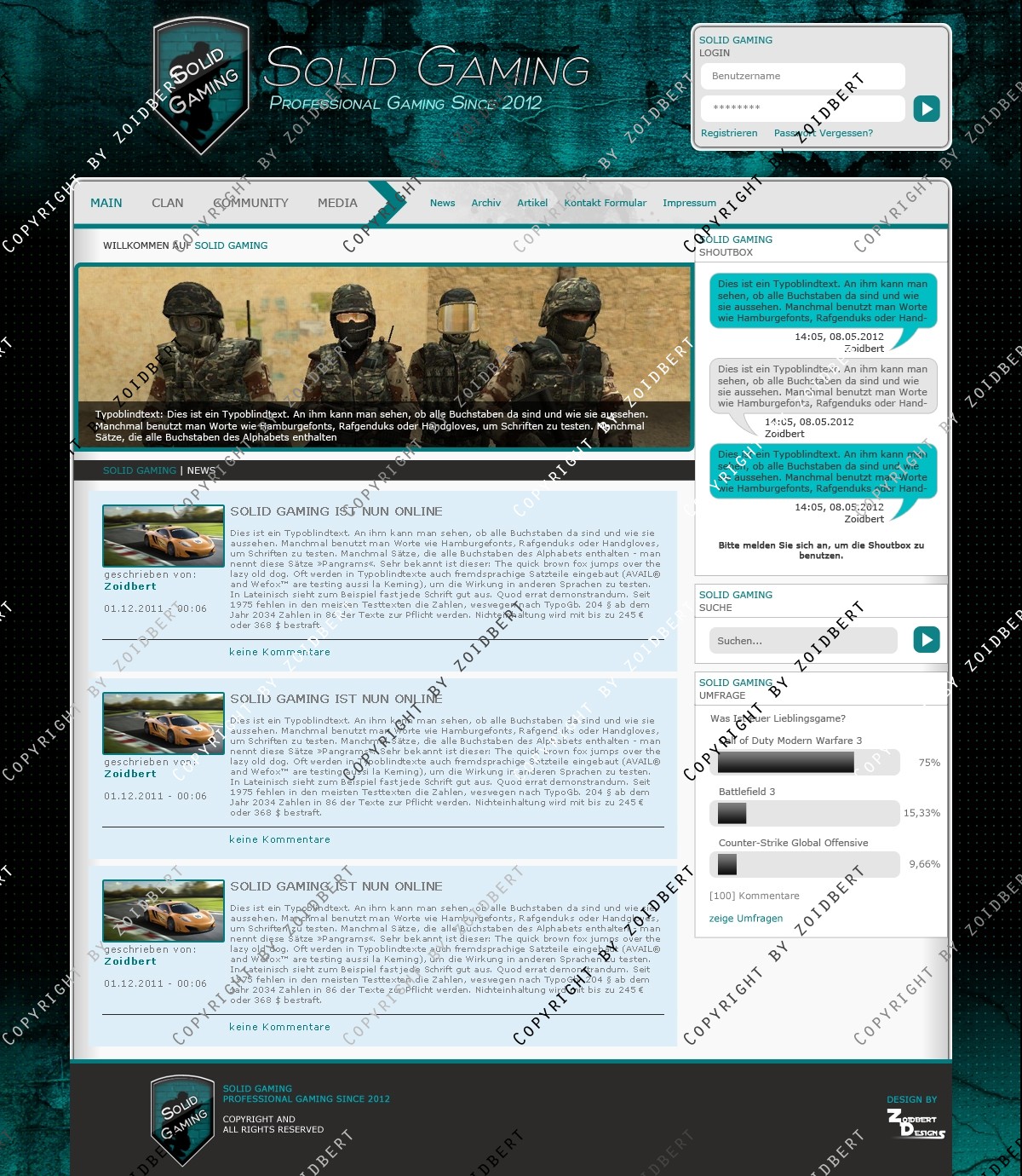 ZoidbertDesigns präsentriert: Solid Gaming Template Hinweis: Design Only (Keine Anpassung und keine Slices)