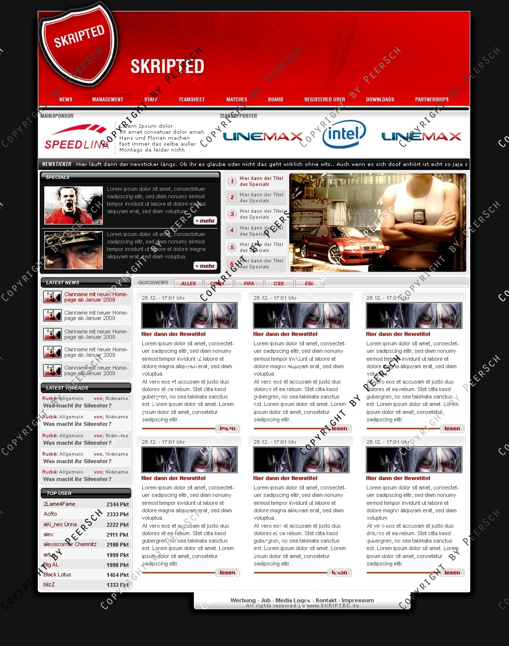 Was Sie hier kaufen ist lediglich die PSD Datei, gerne kann ich es Ihnen gegen einen Aufpreis von 13€ an ein CMS Anpassen, zur Auswahl stehen hierbei: webSPELL, Clansphere, Teklab, Devilz und andere CMS auf Anfrage ohne Aufpreis.