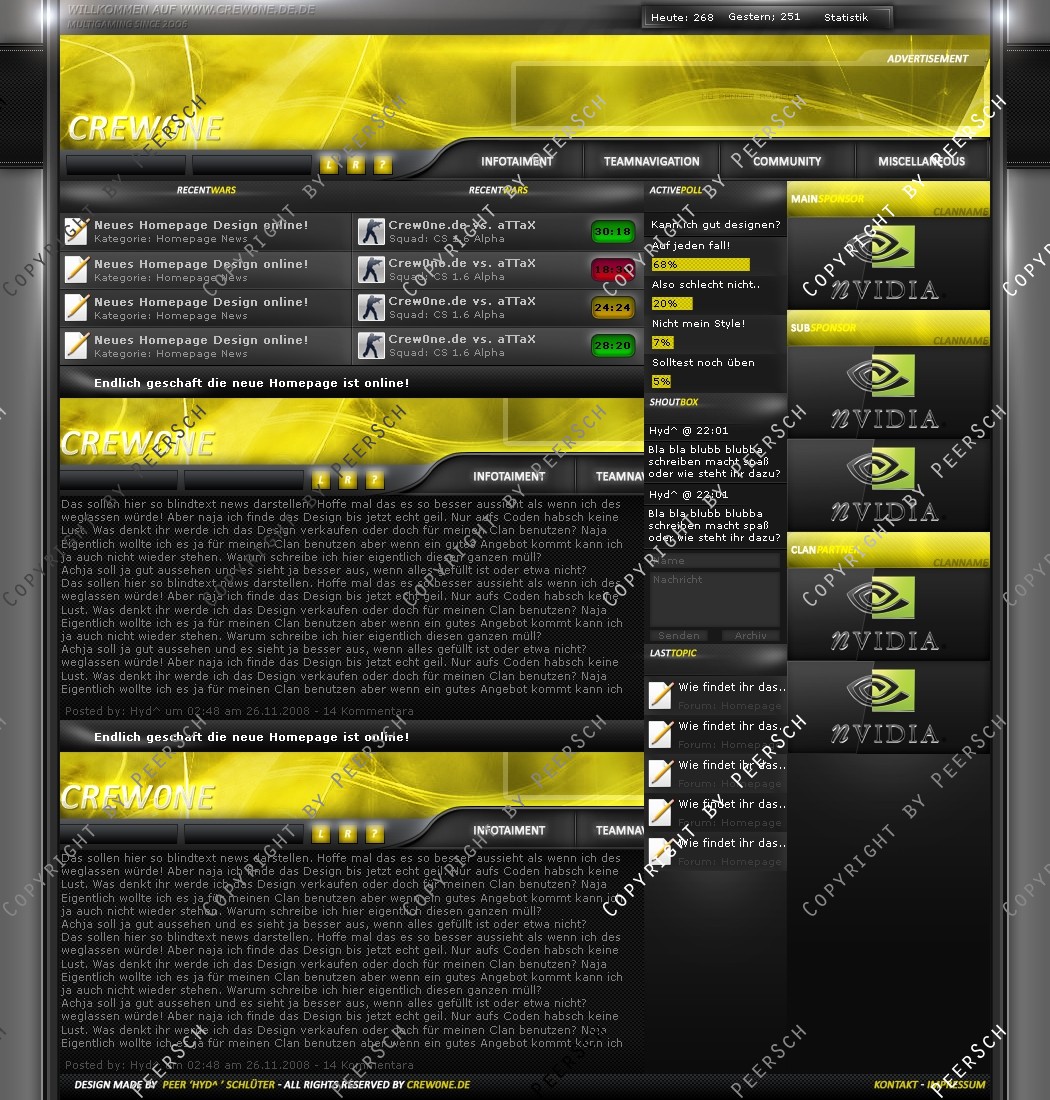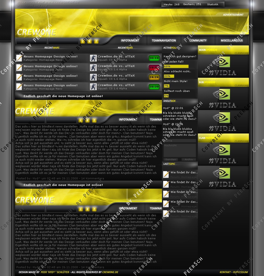 Was Sie hier kaufen ist lediglich die PSD Datei, gerne kann ich es Ihnen gegen einen Aufpreis von 13€ an ein CMS Anpassen, zur Auswahl stehen hierbei: webSPELL, Clansphere, Teklab, Devilz und andere CMS auf Anfrage ohne Aufpreis.