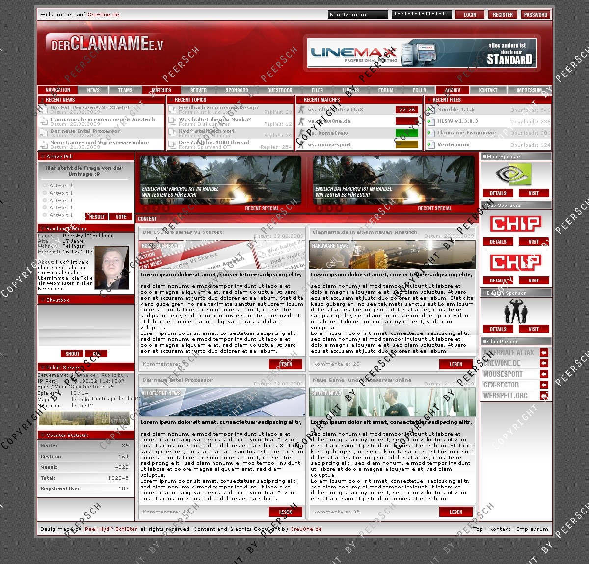 Was Sie hier kaufen ist lediglich die PSD Datei, gerne kann ich es Ihnen gegen einen Aufpreis von 13€ an ein CMS Anpassen, zur Auswahl stehen hierbei: webSPELL, Clansphere, Teklab, Devilz und andere CMS auf Anfrage ohne Aufpreis.