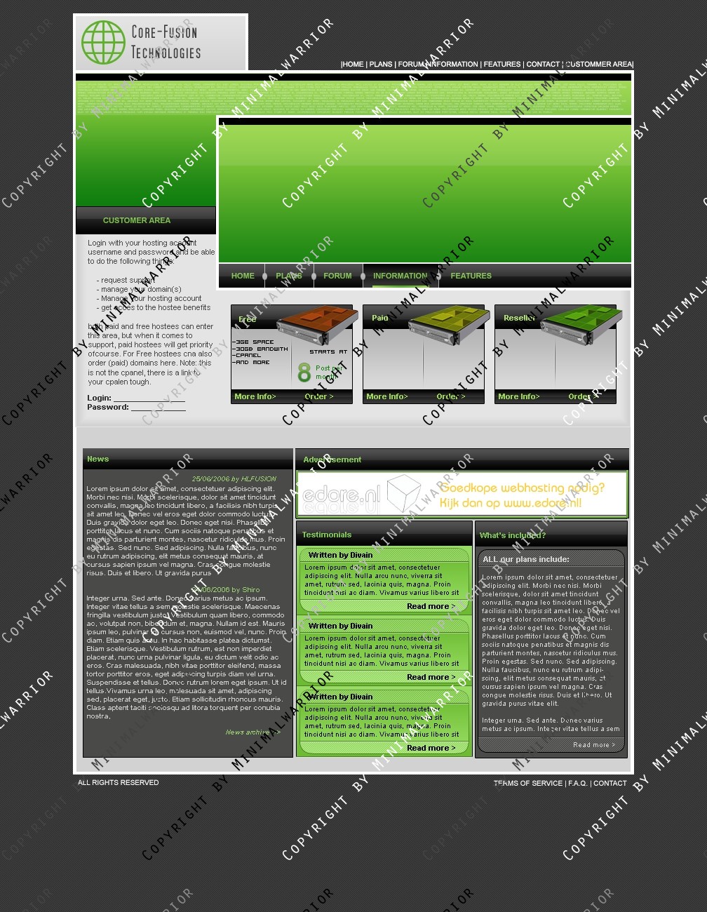 Ich verkaufe folgendes Hosting Layout mehrmals oder exklusiv zu einem für mich angemessenen Preis-/Leistungsverhältnis! Verkauft werden lediglich die .psd-Dateien des jeweiligen Templates, das bedeutet also, dass kein Code bzw. Slicing im Preis inbegriffen ist.