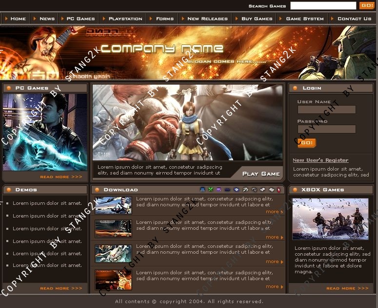Dieses Design ist optimal für Gamercommunitys oder Clans. Das Design ist in braun und kann danke der mitgelieferten PSD und der Schriftarten nach eigenen Wünschen verändert werden.