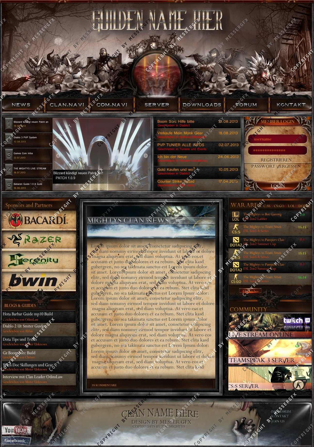 Ein Gilden Design was Wirklich gut zu Diablo 3 Gilden Passt aber es wurde auch für einen Multigaming clan ausgelegt so dass man auch matches usw eintragen kann bei weiteren fragen einfach melden