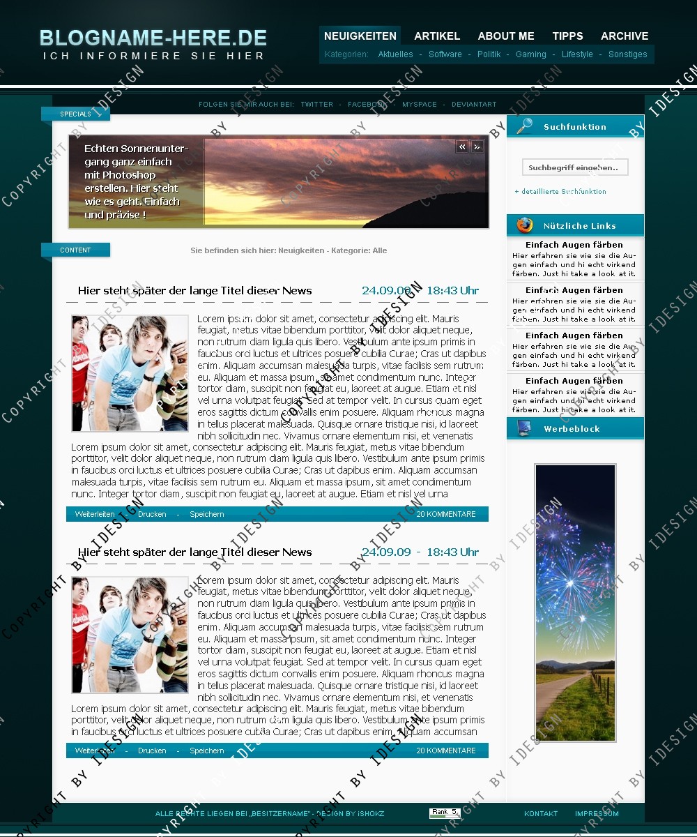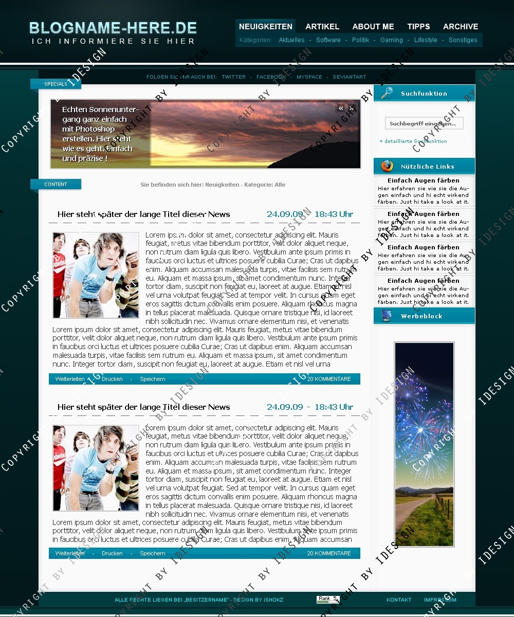 Hinweis: Hierbei handelt es sich nur um das Design, eine Anpassung an ein CMS-System ist nicht im Preis enthalten!