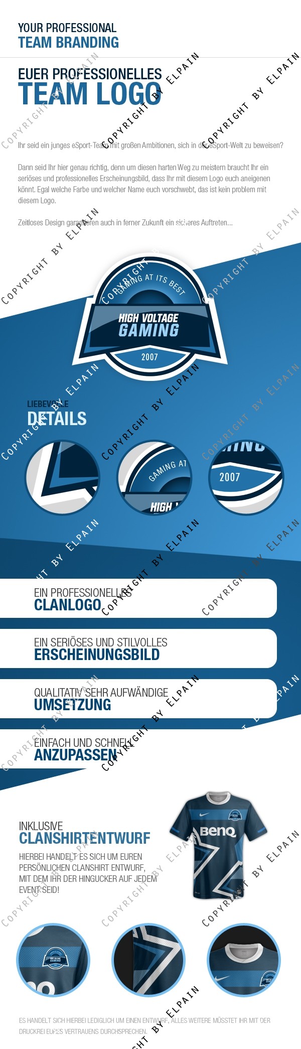 Dann könnte EUCH dieses Logopaket gefallen, denn Ihr kauft hier nicht nur ein einzelnes Produkt, sondern ein Logo, einen passenden Spielerrahmen sowie einen Entwurf für eigene, individuelle Clanshirt.