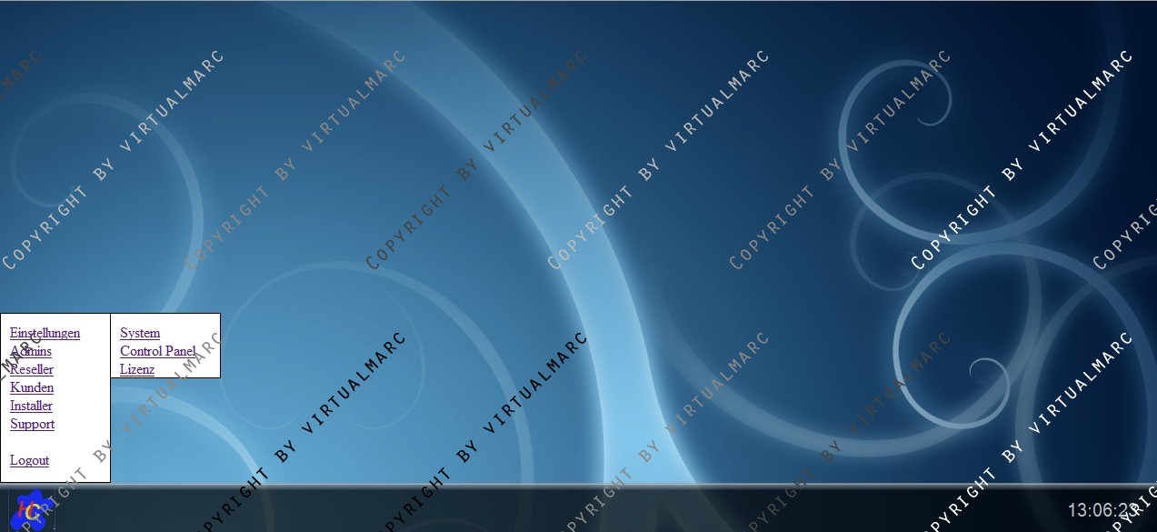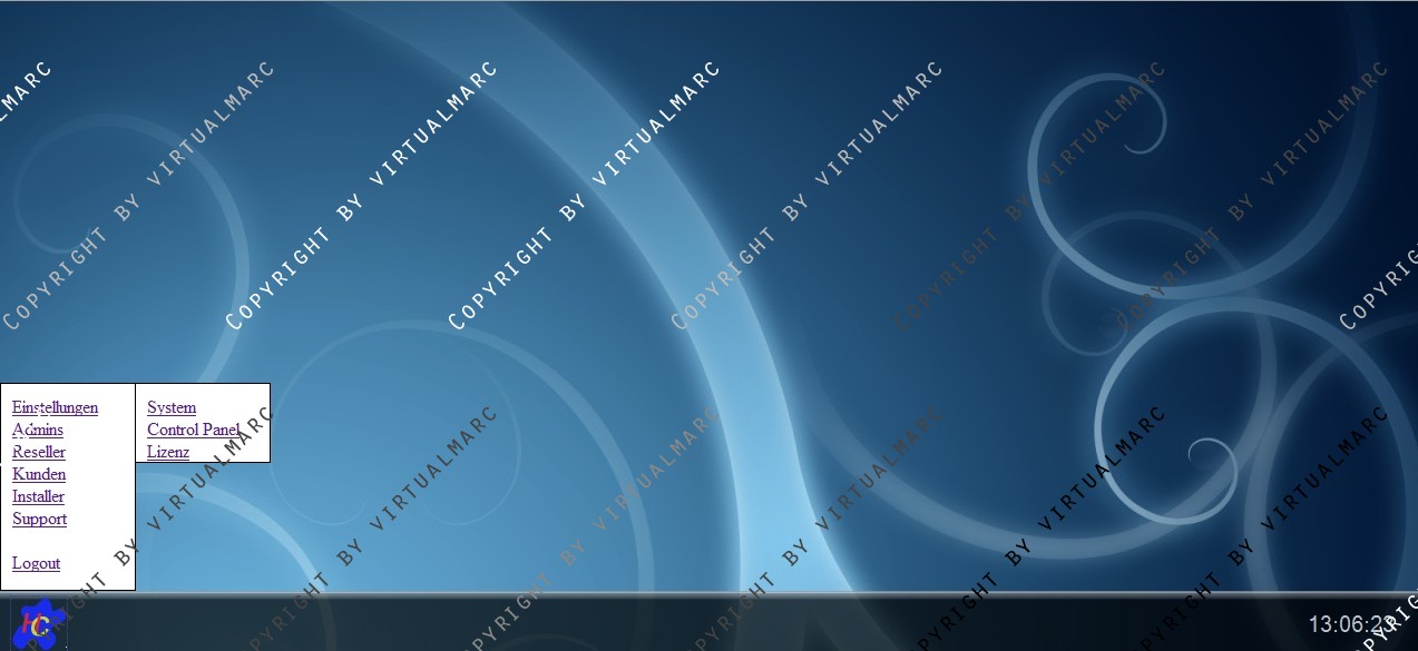 Unten befindet sich eine Menüleiste mit einer Uhr und einem PullUp Menü.