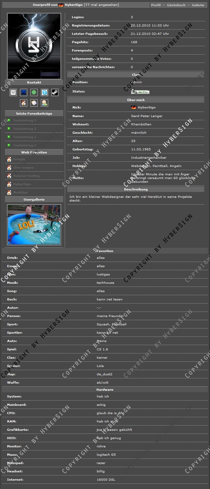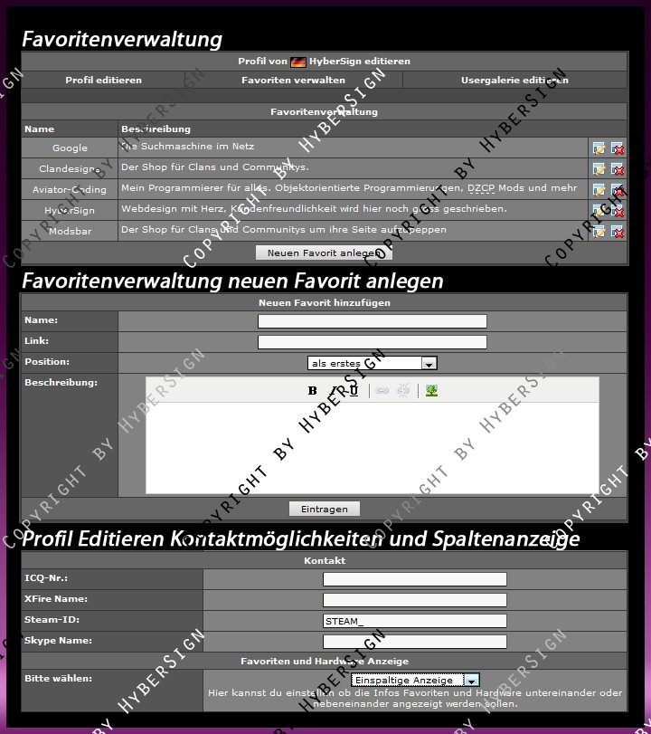 • Anzeige von User Web Favoriten die sich bequem beim Profil editieren anlegen lassen.
