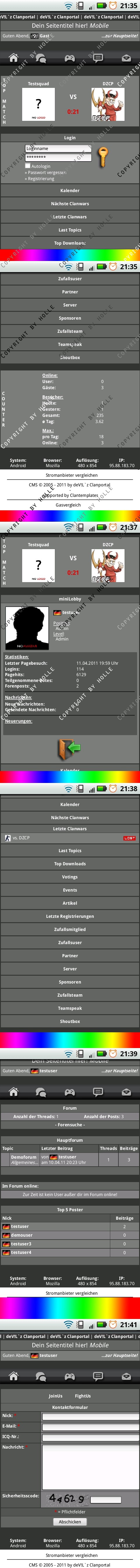 Eine spezielle Ansicht für das Forum, Squads/Teams & Gästebuch sind integriert. Außerdem ist wurde das Kontaktformular mit Join- & Fightusbereich in das "Minimenü" integriert. Des weiteren findet man beim Betreten der Seite einen Login Bereich vor, wo - nach dem Einloggen selbstverständlich ;) - eine kleine persönliche Statistik und die Neuerungen seit dem letzten Pagebesuch kompakt dargestellt werden.
