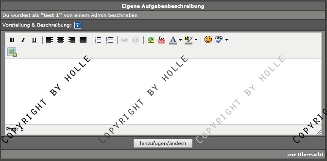 User, die in der Aufgabenverwaltung gelistet sind, können einen eigenen Text definieren und sich so zB Vorstellen oder eine eigene Stellenbeschreibung hinzufügen.