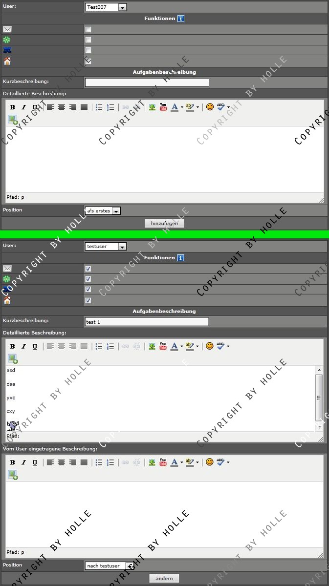 Bild 4: Oben: Formular zum eintragen einer neuen Aufgabe, Unten: Aufgabe editieren