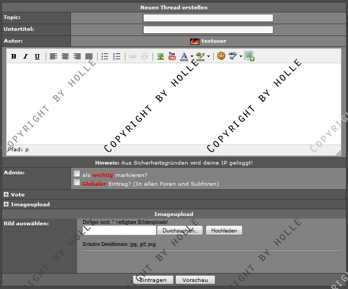 + ...können direkt Bilder im Forum während des Thread oder Post erstellens uploaden