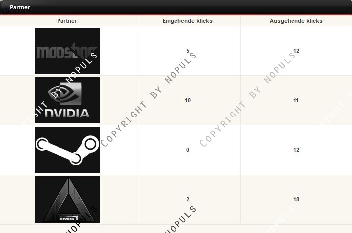Dieser Mod erlaubt euch die ein und abgehenden Klicks von euren Partnern zu zählen, damit ihr sehen könnt welche Partnerschaften sich lohnen und welche nicht. Dabei werden nur die User gezählt die neu auf eure Homepage vermittelt wurden. Es wird beim erstellen bzw. beim editieren eines Partnerbuttons automatisch ein Link für den Partner erstellt den dieser auf seiner Webseite einbinden muss. Desweiteren lässt sich bei jedem Partner einstellen wohin der weitergeleitet werden soll, wenn er auf die Homepage kommt.