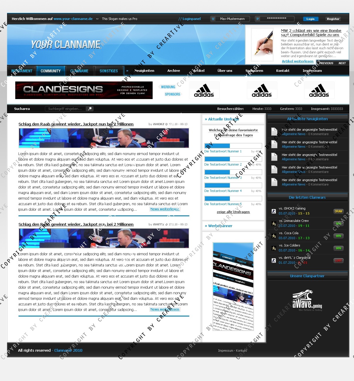 Du hast noch keinen Account auf ClanDesigns.de? Dann kannst du dich hier kostenlos registrieren!