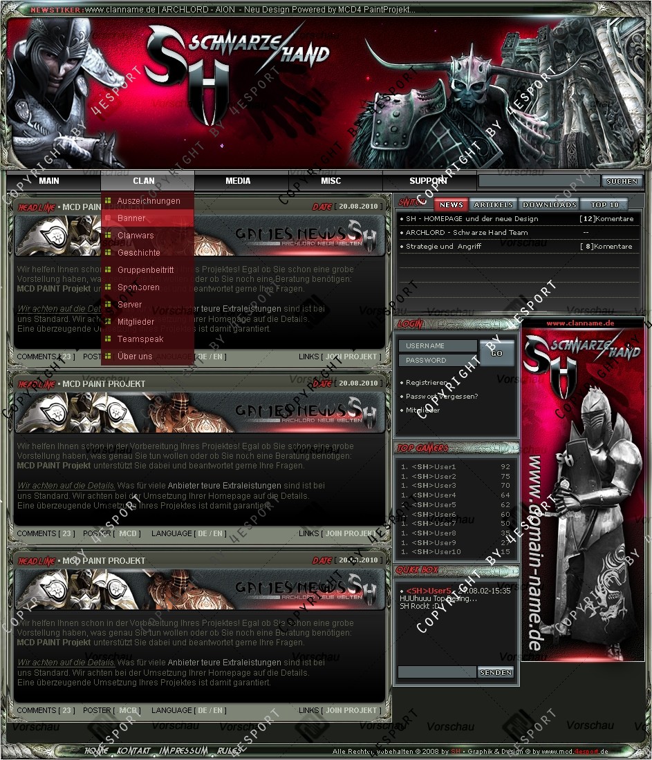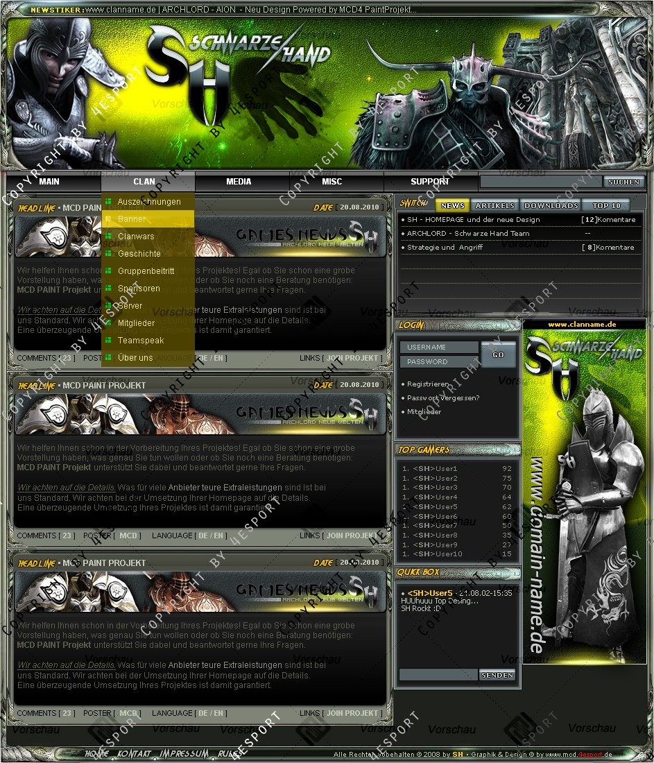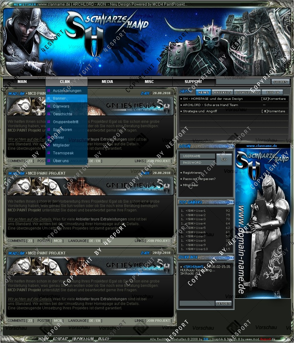 Wir können auch Ihre EXKLUSIVE Farbanpassung anfertigen bzw.: Neue LOGO CLAN NAME, Rahmen, Boxen Hintergründe, Titel-Fonts, Verlauf-Farben, Boxen Anordnung, usw.... das alles ist nur in EXKLUSIVE PREIS enthalten.