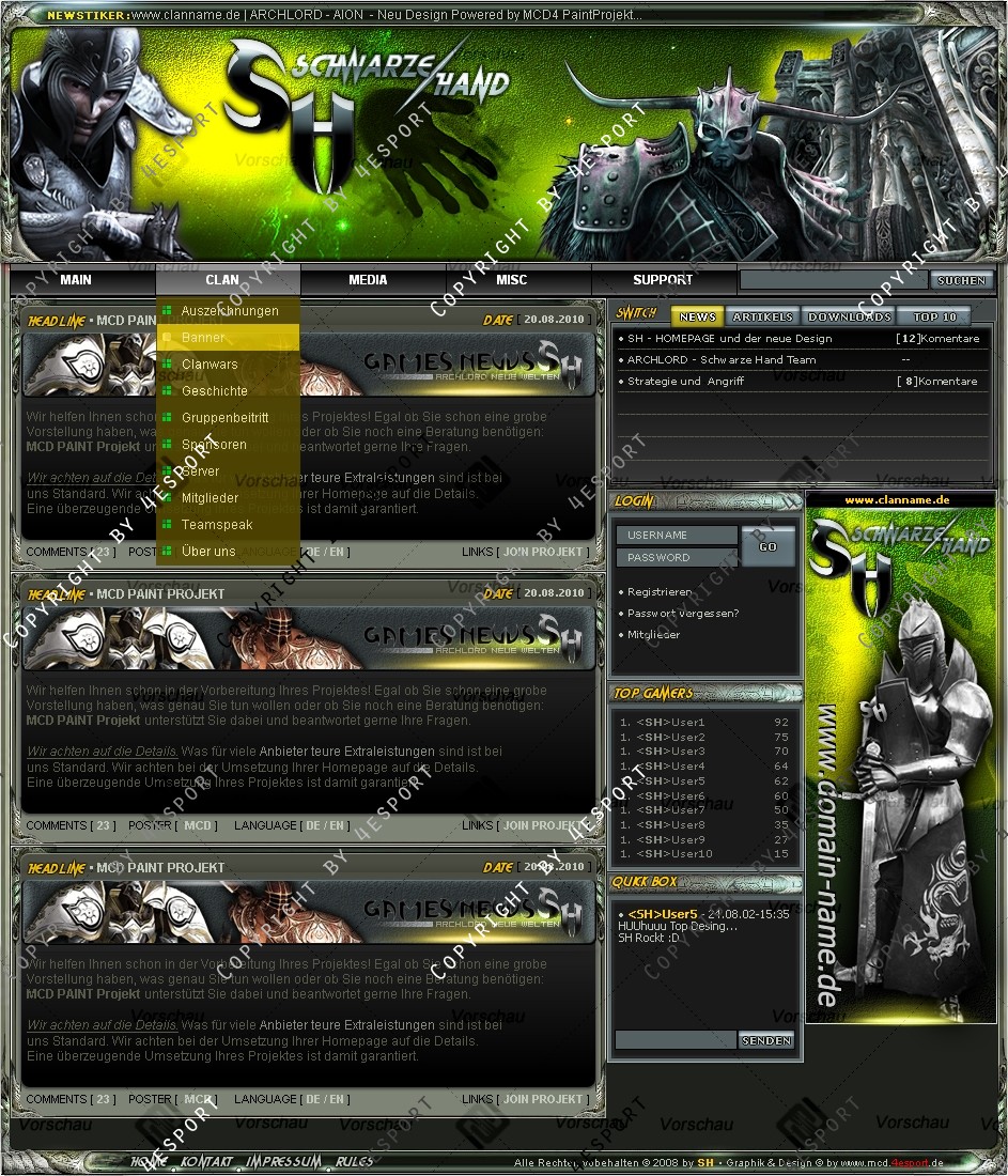 Diese PREMIUM Template ist nur an Webspell 4.2.2 ORG Angepasst (für andere CMS wellen Sie EXTRA LEISUNGEN "CMS-Anpassung + 50€")