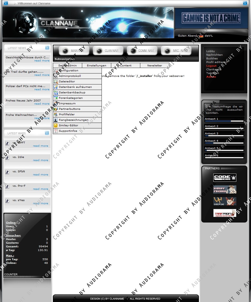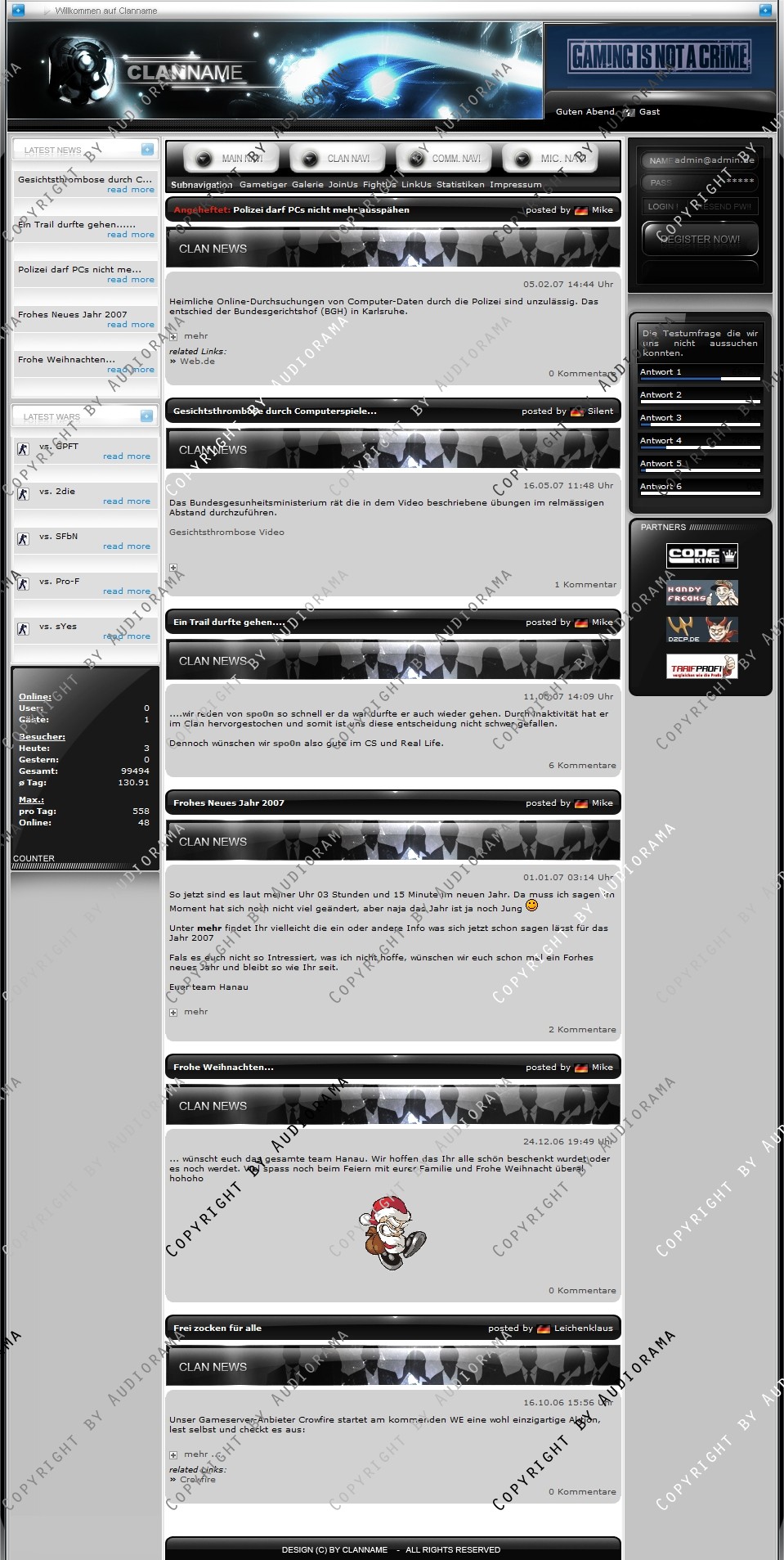 Du hast noch keinen Account auf ClanDesigns.de? Dann kannst du dich hier kostenlos registrieren!