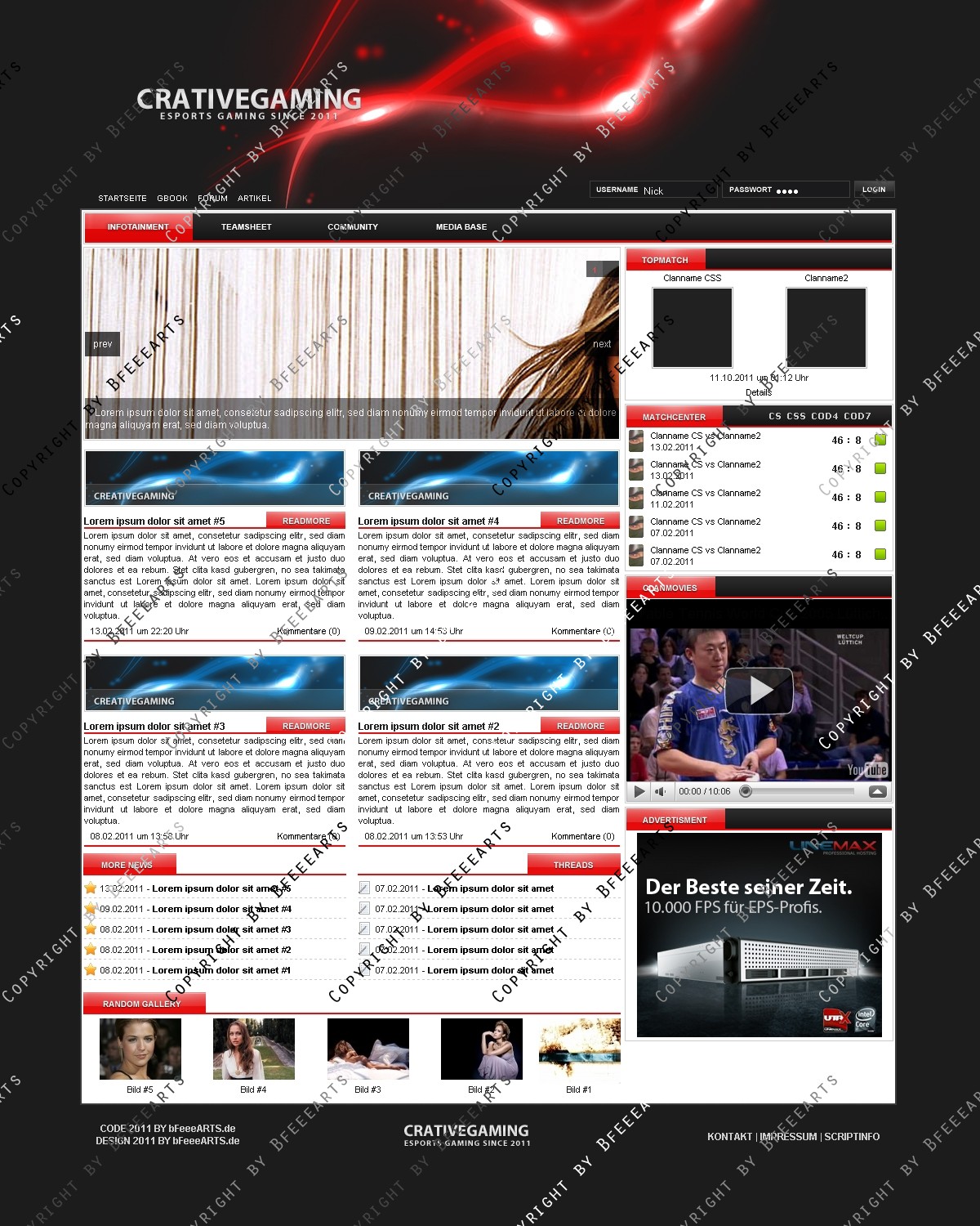 - modifizierter Newsbereich mit "2 spalten News" "last news" "last Board" "gallery"