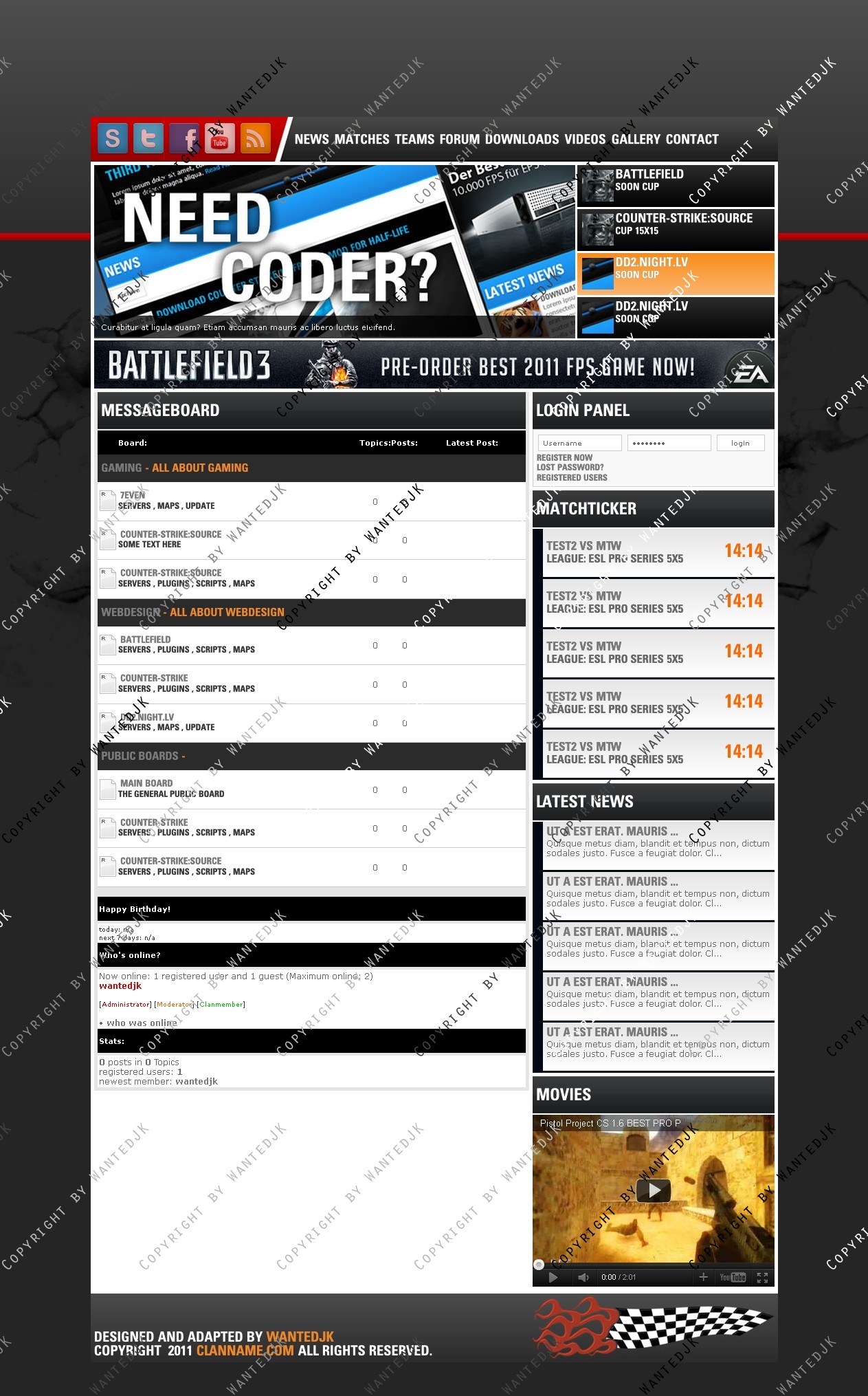 Include templates - News , Forum , Profile , Matches , Members