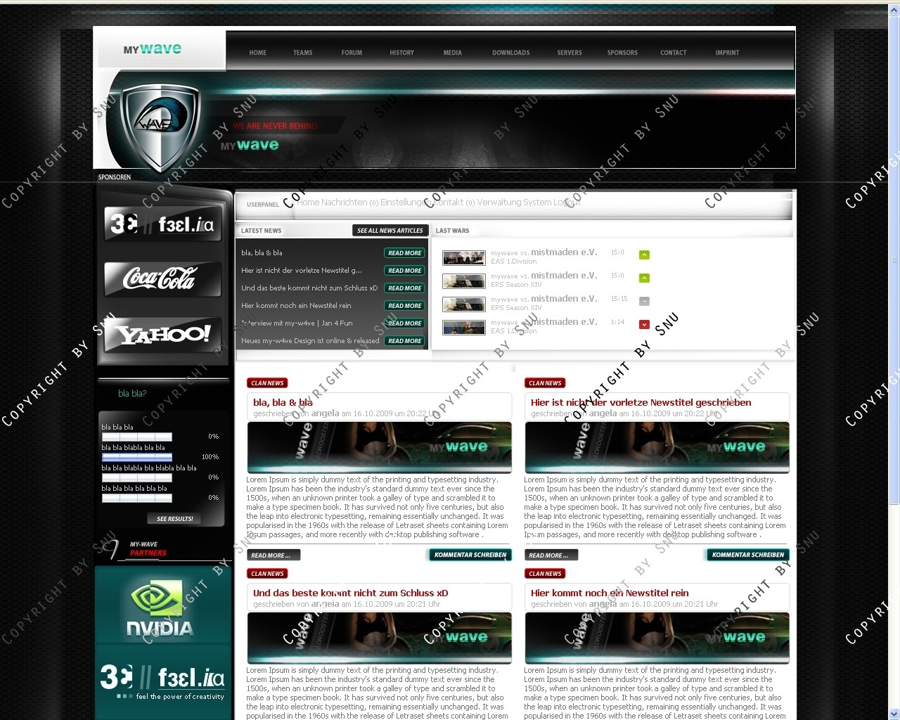Ich verkaufe hier das Clandesign von Mywave(nein kein billiger 0815 freetemplate fake, das Original!). Angepasst ist das ganze an Clansphere 2009.0.2.