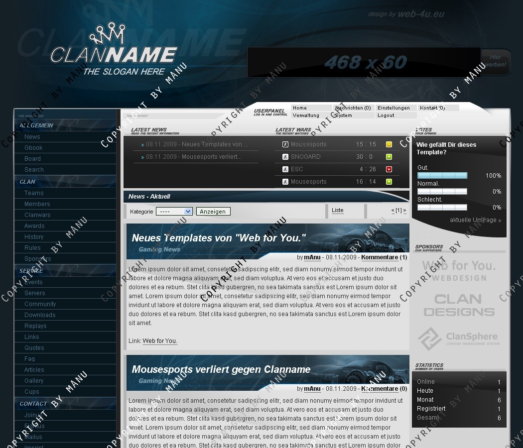 Pacific ist ein neues Template von Web for You. aus der "Feder" von Manuel Wendt. Es passt zu allen Themen, wie z.B. Clans, Firmen, Schulklassen und anderen Communities.